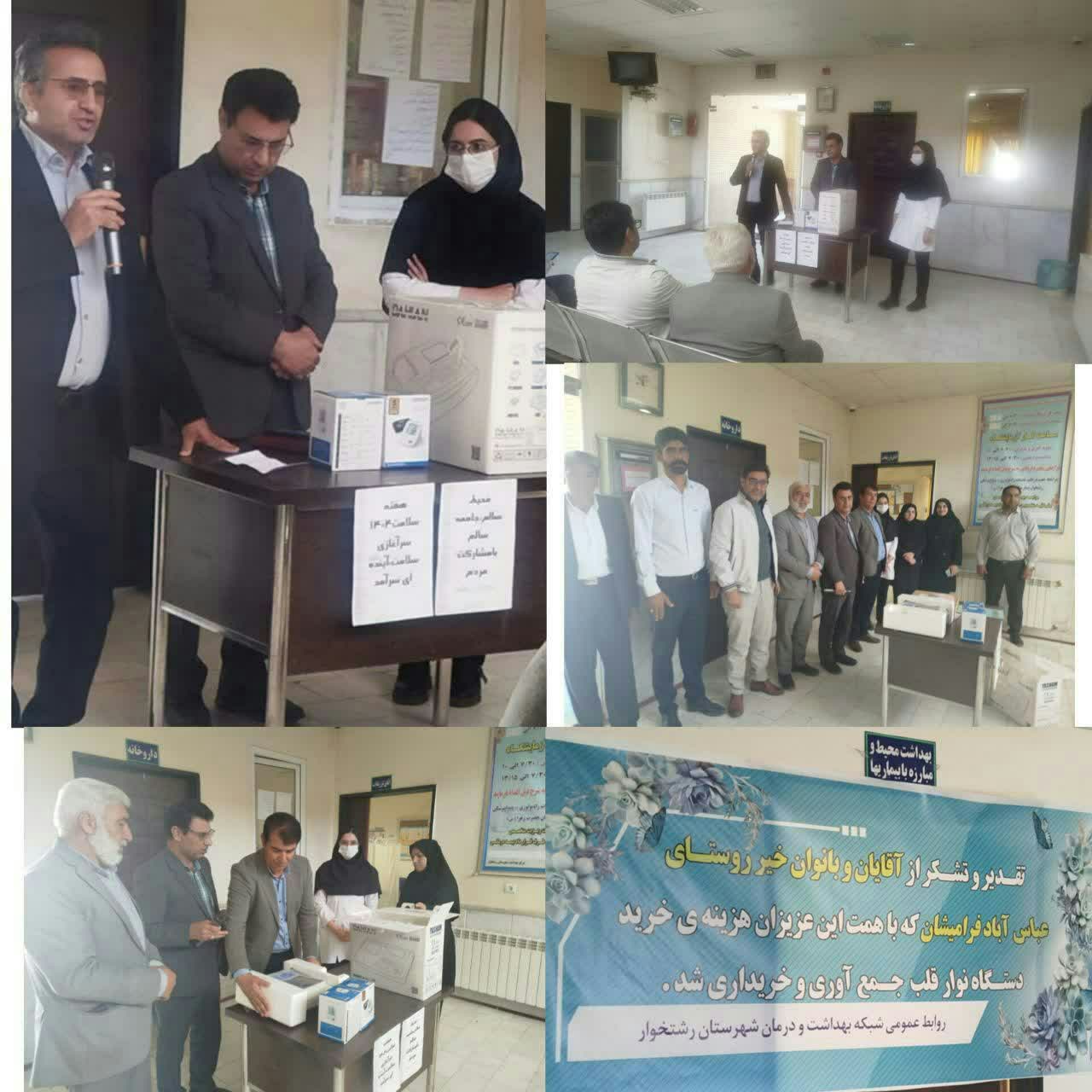 اهدای تجهیزات پزشکی به ارزش بیش از یک میلیارد ریال به مرکز خدمات جامع سلامت روستای عباسآباد فرامیشان شهرستان رشتخوار دکتر یعقوبی، سرپرست شبکه بهداشت و درمان شهرستان رشتخوار ضمن قدردانی از تلاشهای خیرین سلامت و مشارکت شورای اسلامی این روستا، اظهار داشت: «با همت خیرین نیکاندیش و همراهی شورای اسلامی، تجهیزات پزشکی به ارزش یک میلیارد و پنجاه میلیون ریال تهیه و به این مرکز درمانی اهدا شد.» دکتر یعقوبی افزود: «این اقدام ارزشمند نقش مهمی در ارتقاء خدمات درمانی و بهداشتی به مردم منطقه خواهد داشت و نشاندهنده روح همدلی و مشارکت مردمی در ارتقاء سلامت جامعه است. |